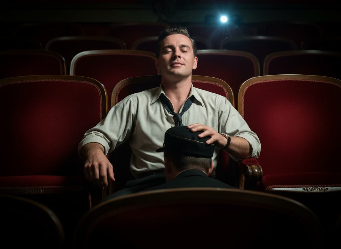 The usher stood at the end of the row, hands behind his back. He nodded, once, then receded into the shadows, leaving Adrian with the drumbeat of his own pulse and a film he had already forgotten.