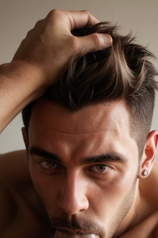 He used his grip to guide Jesse’s head forward. Jesse closed his eyes, the world narrowing to the smell of clean sweat and steam, the cold tile under his knees, the firm pressure of Carter’s hand in his hair, and the overwhelming, terrifying proximity of the other man’s body. He expected… he didn’t know what he expected. A blow. A further humiliation.